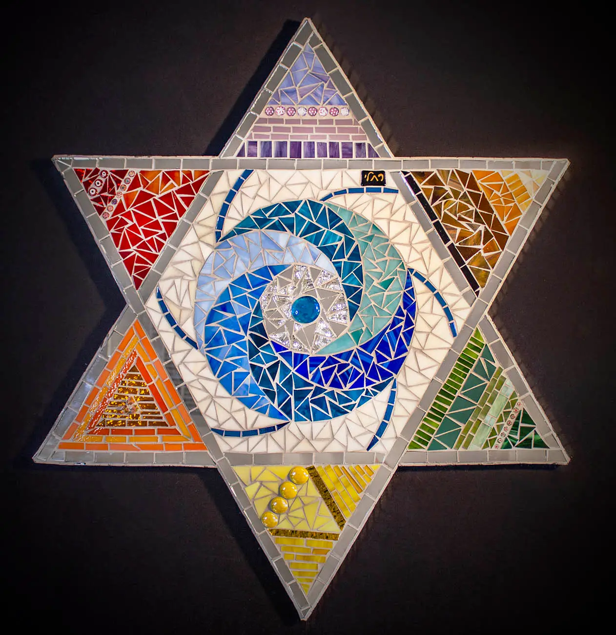 מגן דוד, זכוכית על עץ. גודל 50*50 ס"מ.