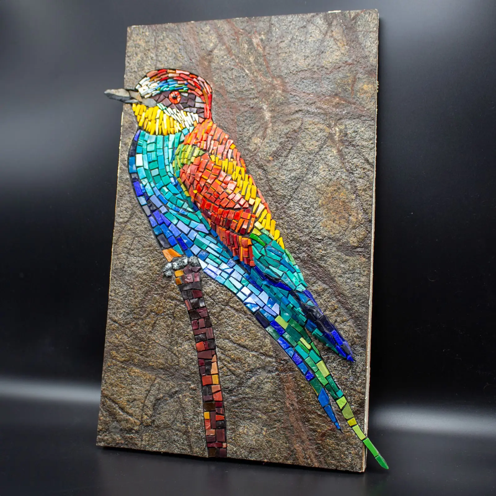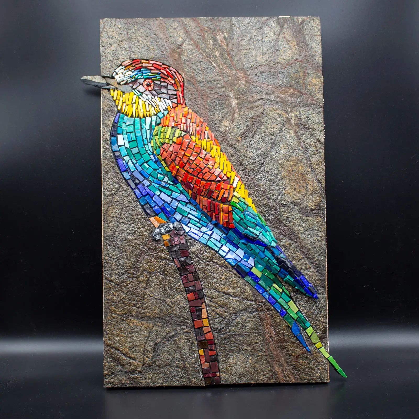 'שרקרק מצוי', זכוכית סמלטי על ציפחה. גודל 30*50 ס"מ.